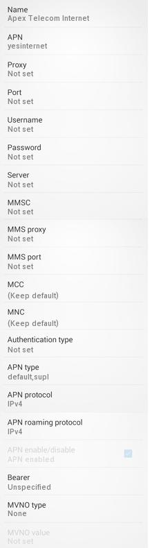 APN : yesinternet
