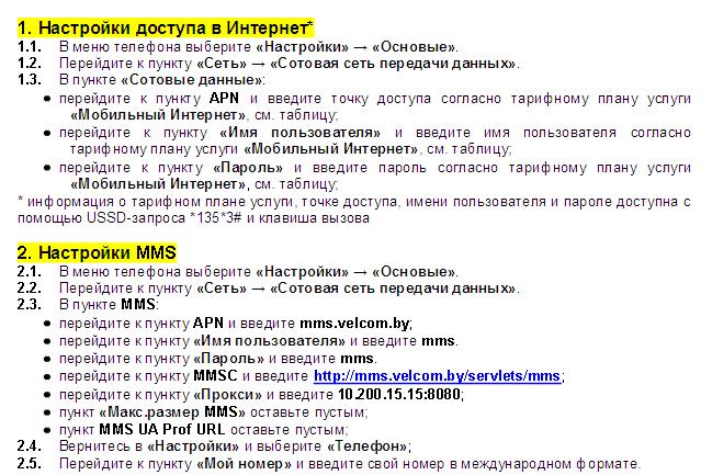 Velcom Belarus APN НАСТРОЙКИ iPhone Android