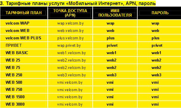 * Customer Care Internet Service on the site as follows: http://internet.velcom.by/.