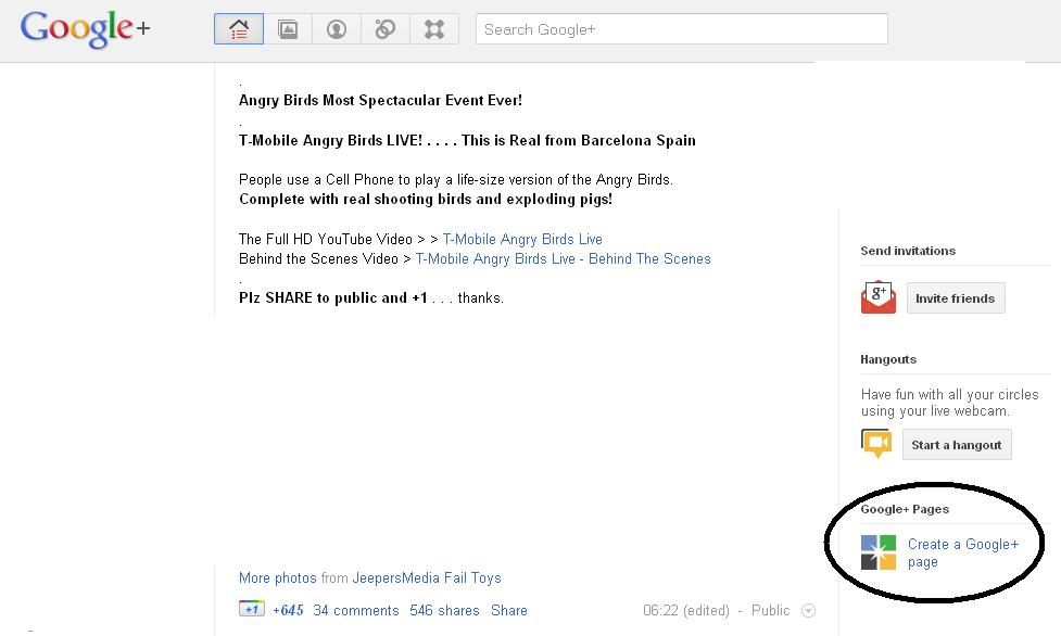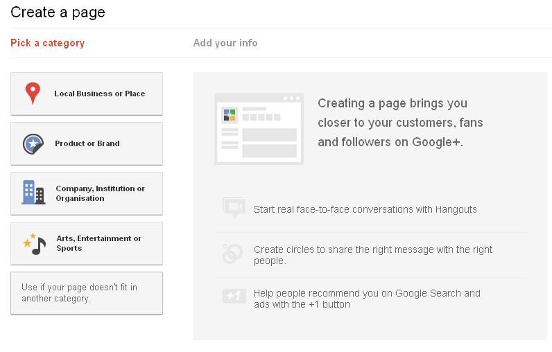 2. On the Right side frame you can find the heading Google+ Pages -> Create a Google+ page