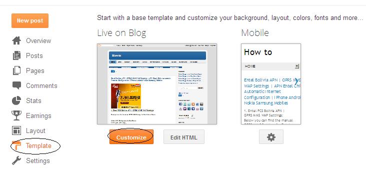 1. Go to Blogger Admin Interface -> Template -> Click on Customize