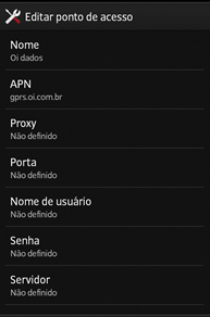 1. Configuração APN da OI no Android / HTC/ Samsung Galaxy/ Nexus/ Motorola: