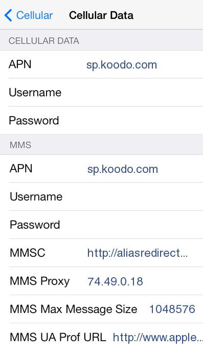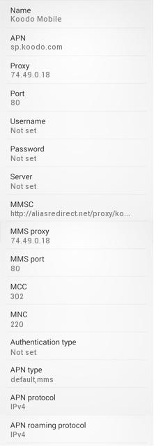 Koodo Internet and MMS APN Settings for Android iPhone Blackberry Windows Phone Nexus Galaxy Canada