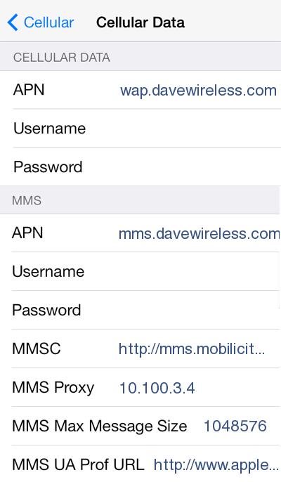 APN: mms.davewireless.com