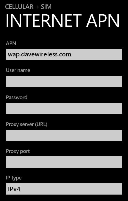 APN: wap.davewireless.com