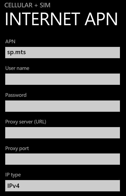 4. MTS Manual APN Settings for Windows Phone /Microsoft Lumia:
