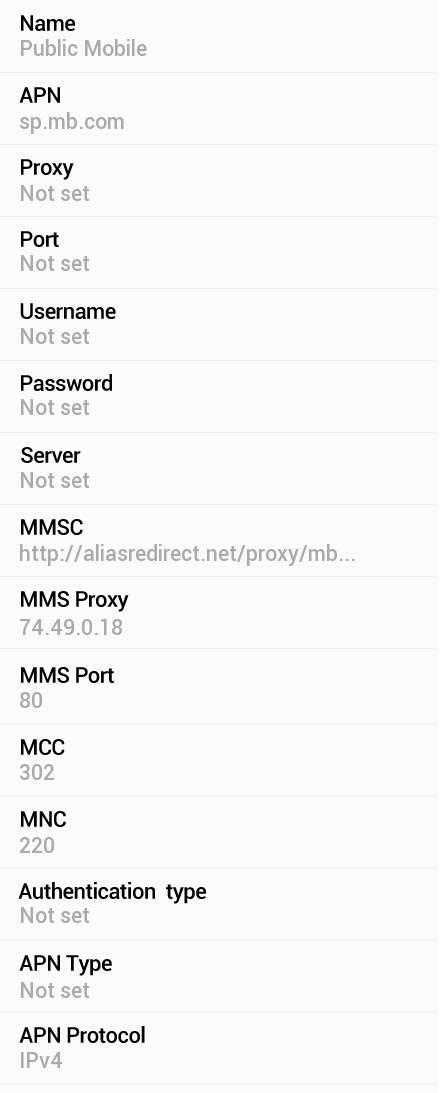 2. Public Mobile APN Settings for Android/HTC/Nexus/Galaxy: