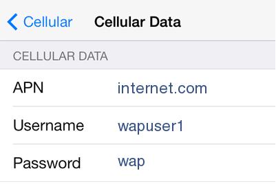 Select Cellular Data Network (or Mobile Data Network ) > APN and enter the following details