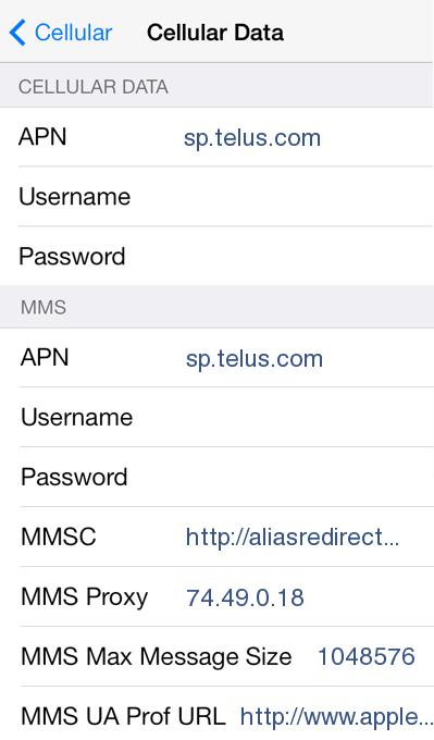 Telus LTE APN settings for iPhone Android Blackberry 10 Windows Phone Samsung Galaxy HTC Xperia Canada