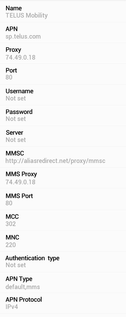 2. Telus APN Settings for Android / Samsung Galaxy S4, S3 S5 S6/ HTC Desire Wildfire / Nexus Note/ Xperia/Motorola MotoG:
