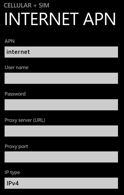 Windows 10 Mobiles Go to Settings ->Cellular -> SIM ->SIM Settings -Internet APN