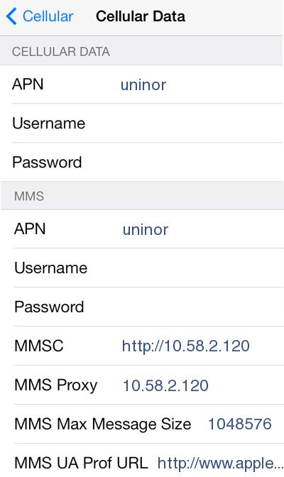 3. Uninor GPRS Settings for iPhone 4S,5,6,6s / Pad: