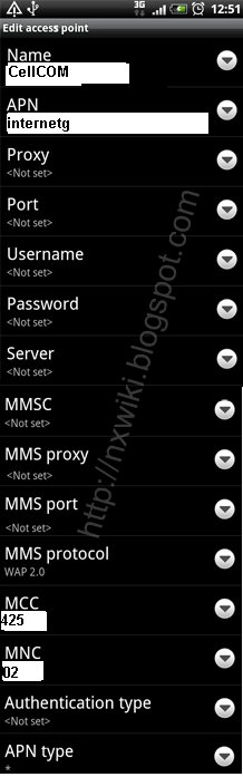 1. Cellcom APN Settings for Android / HTC/ Samsung/ Nexus: