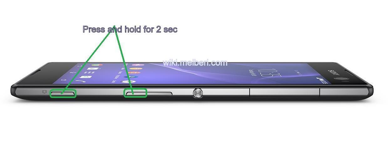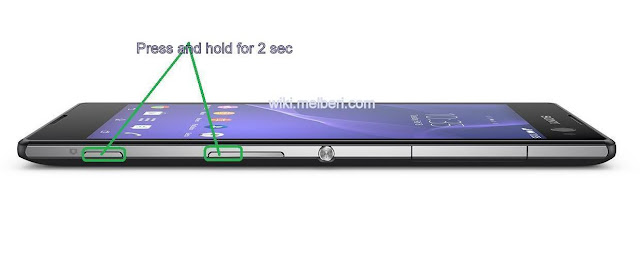 2) Press and hold the Power and volume down button together for 2 seconds.