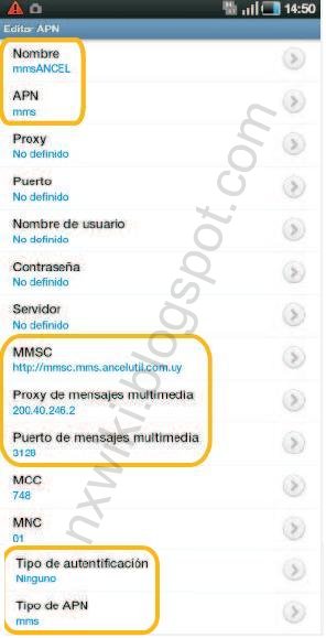 2. APN de Ancel para Samsung Galaxy /Android /HTC:
