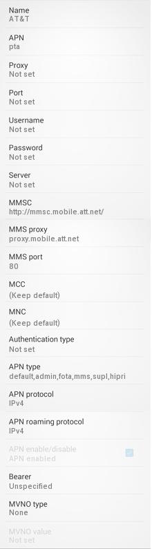 Access Point Name (APN) : proxyUsername/Password : Not applicable. NA If the device requires a username and password, enter the letter “a” for both.