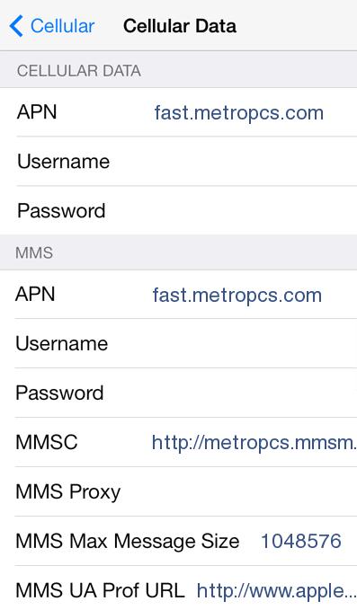 2. MetroPCS APN Settings for iPhone
